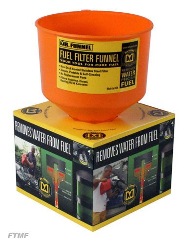 Mr. Funnel F8 Orange, The Mr. Funnel Fuel Filter is a heavy-duty, fast-flow, convenient and portable funnel with built-in, patent pending filter. The Mr. Funnel Fuel Filter is specially designed to filter out water, dirt, and debris from most fuels including, gasoline, diesel, heating oil, and kerosene. These harmful contaminants can lead your engine to a loss of efficiency, engine shutdown, or even system failure.