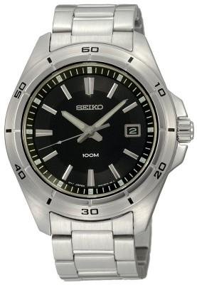 Seiko SGEE89, Seiko Date Stainless Steel Band. Mens Watch with Sapphire Crystal Glass. Dial: Black. Band: Stainless Steel. Case: Stainless steel. Calendar: Date. Water resistant: 100 meters